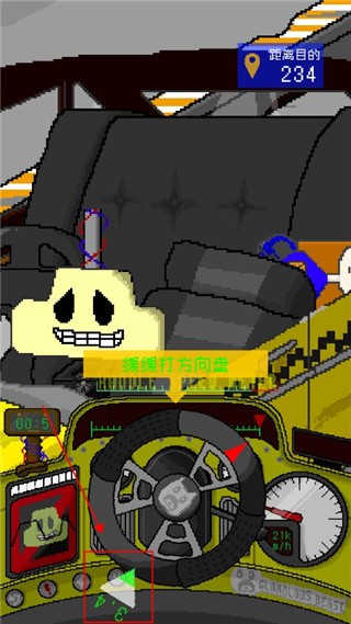 3、转动方向盘控制车辆。要控制方向盘上的红色箭头划过绿色光标才算有效操作。当绿色光标时间结束则会操作失败,多次后客人就会进入晕车状态,这是要避免的哦。
