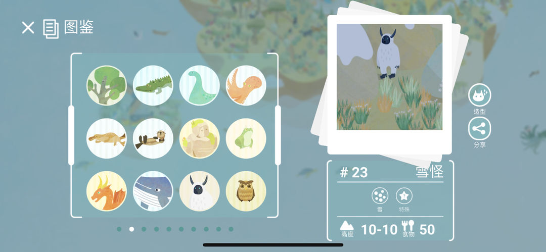 3、近50种生物及10种不同地形等待探索,一些人为事件将介入岛屿的发展,每个选择都可能伴随利益与危害。