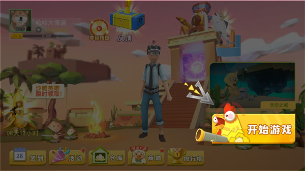 1、首先进入奇葩吃鸡派对游戏,刚进入游戏会有新手指导,我们先跟着新手指导走;
