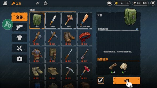 6、为了方便后期的收集,我们还需打造一个背包,点击下图箭头所指的选项