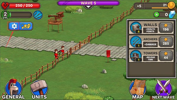 1、晋级城墙能够增加城墙的血量,敌人就更难打破你的防线,晋级弓箭手能够增加防御伤害;晋级塔楼和投石机能够加快箭楼和投石机的射速。