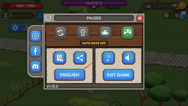 2、然后在设置菜单的左下角点击【ENGLISH】按钮。