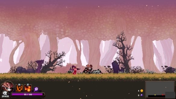 玩家角色的能力由其头部来决定,换头后会有一套新的攻击方式和技能,玩家最多可以有两个头骨,按下↑键可以随时进行切换,但切换有冷却时间。